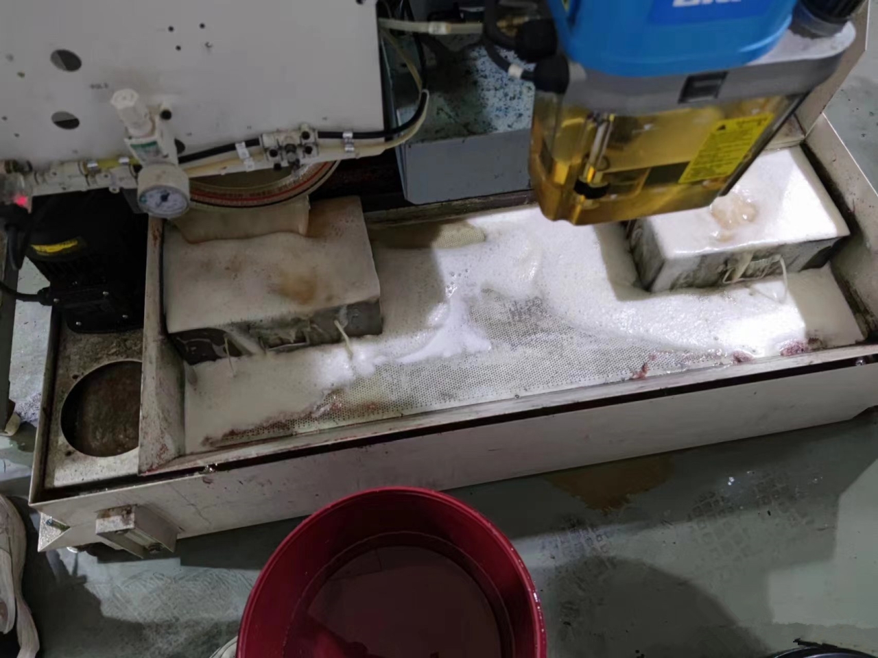 停機前24小時將所有已經(jīng)出現(xiàn)異味、輕微腐敗變質(zhì)的機臺切削液按工作液體積 0.1%-0.3%的比例加入殺菌劑,并充分循環(huán)均勻;如已嚴重腐敗變質(zhì),及時更換新液。將油槽及循環(huán)管路內(nèi)的舊液、切屑、淤泥徹底清洗干凈。